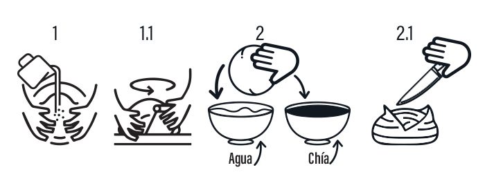 1Para formar la masa a mano, colocar el Ready Mix Pan de Grano Antiguo sobre la mesa de trabajo en forma de “volcán”, desmoronar la levadura y colocarla al centro, adicionar un poco de agua y comenzar a amasar (Ver figura 1). Agregar el resto del agua y continuar amasando, hasta que la masa sea homogénea y tersa, elástica, brillante, y se despegue de las manos y mesa de trabajo (Ver figura 1.1).