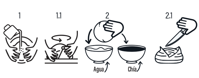 1Para formar la masa a mano colocar el Ready Mix Pan de Grano Antiguo sobre la mesa de trabajo en forma de “volcán”, desmoronar la levadura y colocarla al centro, adicionar un poco de agua y comenzar a amasar (Ver figura 1). Agregar el resto del agua y continuar amasando, hasta que la masa sea homogénea y tersa, elástica, brillante, y se despegue de las manos y mesa de trabajo (Ver figura 1.1)..