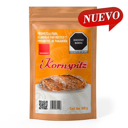 1. Pesar los ingredientes. Mezclar todos los polvos (harina, Kornspitz, azúcar, sal, Mejorante XXL) con la levadura. Hacer una fuente con la mezcla, agregar poco a poco el agua y mezclar.