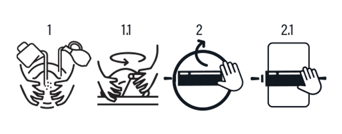 1Para formar la masa a mano, colocar el Ready Mix Kurkuma sobre la mesa de trabajo en forma de “volcán”, desmoronar la levadura y colocarla al centro, adicionar un poco de agua y comenzar a amasar (Ver figura 1). Agregar el resto del agua, continuar amasando y agregar el aceite, seguir hasta que la masa sea homogénea y tersa, elástica, brillante, y se despegue de las manos y mesa de trabajo (Ver figura 1.1).